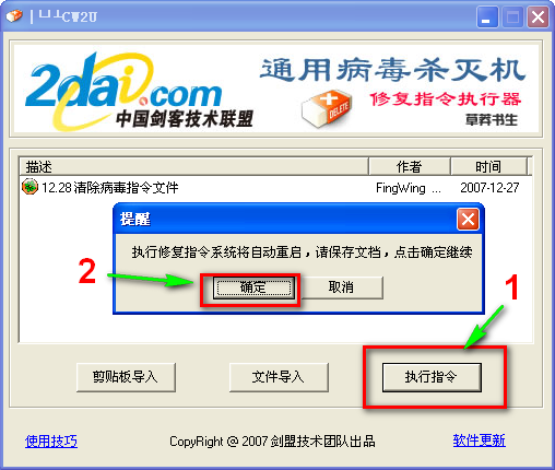 导入指令文件后点击执行,软件将重启系统进入dos下杀毒