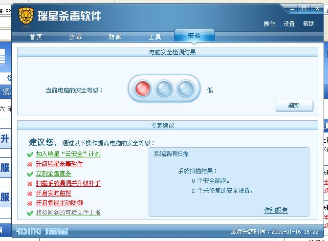 点开始-程序-瑞星杀毒-修复试试``如果不行请重新安装