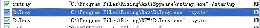 有这个O4 - HKLM\..\Run: [RavTray] "C:\Program Files\Rising\Rav\RsTray.exe" -system