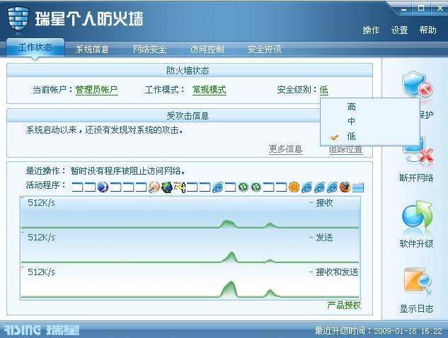 瑞星2009防火墙如何设置安全等级?