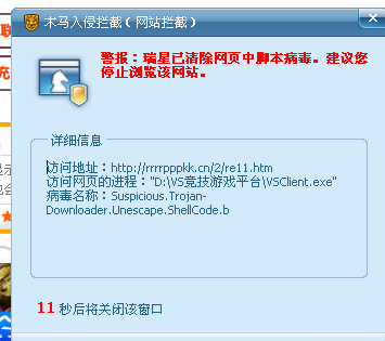 为什么我一登陆VS平台,瑞星就报毒呢?