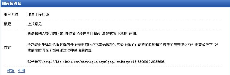懒得去那里提了 还是版主 或者工程师直接来收集吧!!!! 我不信他们这么不副责任 这么大的问题不来反馈