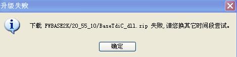我的正版防火墙最近一直无法升级,提示“下载FWBASE2K/20_55_10/BaseTdiC_dll.zip失败,请您换其他时间段尝试。”,我已经连续几天在不同时间段试过了,都是这样提示,是怎么回事啊
