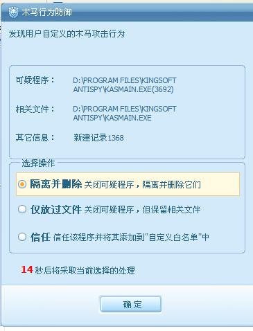 要查证金山清理都干了什么有个很简单的方法。你先运行一下金山清理。再按WIN+F,打开搜索,搜索栏输入KASMAIN,修改日期选当日。搜索一下,看看当日金山清理修改了包含KASMAIN的什么文件?应该不是EXE文件。因为你第一个规则报,第二个规则不报。