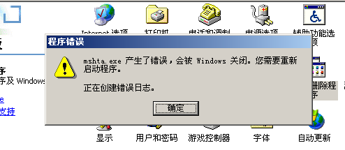 从其他正常电脑里(要和楼主一样的2000系统)复制mshta.exe到自己电脑C:\WINDOWS\system32里覆盖即可