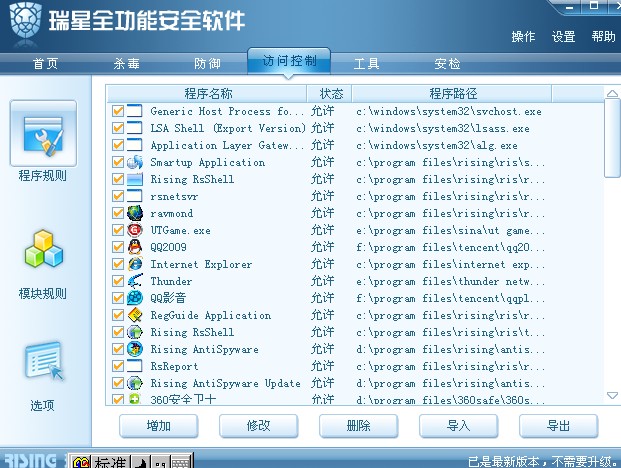 不是,我说的是网络监控的防串改,比如一个程序被列入了访问控制的程序规则里,可是后来程序被修改了,瑞星检测到这个程序要访问网络,就像刚安装的程序一样再问一遍,有吗
