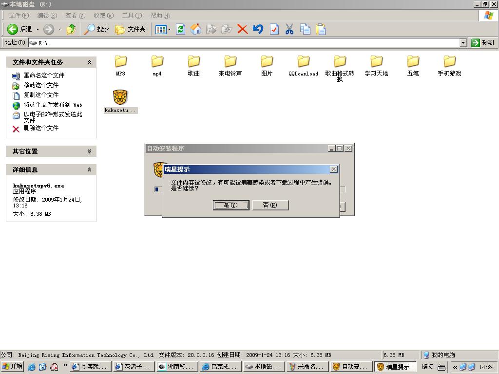 安装过的时候说文件内容被修改或下载过程中出错,是什么原因呢,而且我下个迅雷,快车什么的exe安装文件,打开后出现错误提示...
