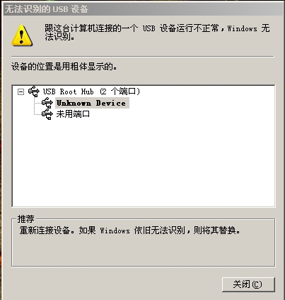 口子换了3个了,还是不行,其他USB设备都能识别的,比如摄像头驱动那些都能的,就这个识别不了...