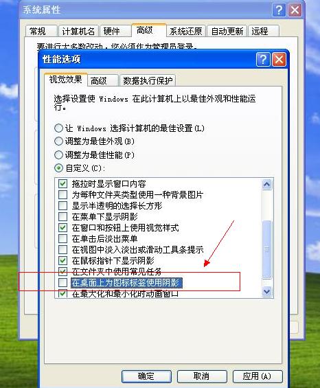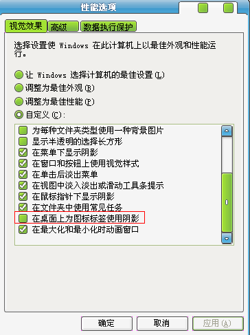 点击我的电脑的属性--高级 --性能设置 点上这个勾