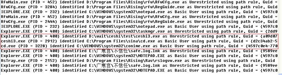我的意思是在我做出选择之前,被监控程序不应该被放行。这说的还不清楚吗?我双击测试程序D:\wait\ceshi\test\ceshi3.exe,木马行为检测弹出提示发现自定义木马行为,相关文件:C:\Program Files\sina\cd.exe,C:\WINDOWS\system32\conime.exe。因为这个测试程序ceshi3.exe会在C:\Program Files\sina\创建cd.exe,ok.vbs,note.exe,vivimin.dll,并运行cd.exe。运行cd.exe时就触发了我编的测试规则,弹出上述提示。但是在我看提示时,cd.exe运行了,并启动了C:\WINDOWS\system32\conime.exe。直到我做出选择,点仅放过文件时,cd.exe 才退出。我觉得这不应该,cd.exe 不应该启动才对,并且cd.exe 还启动了子进程conime.exe。