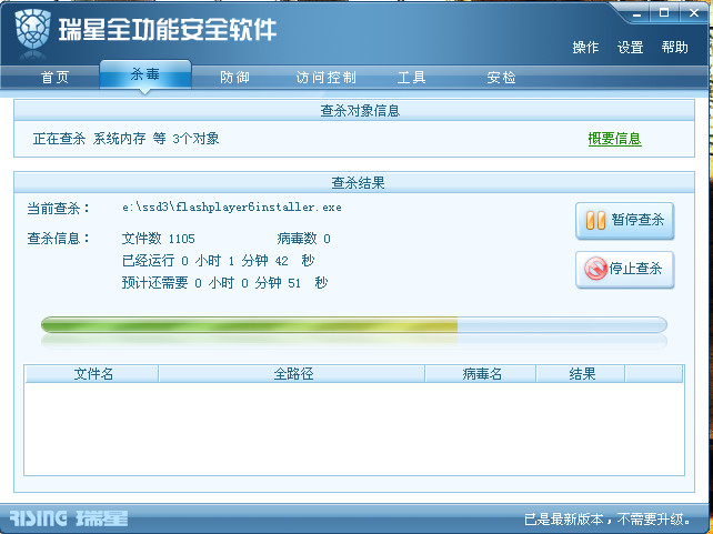今天突然发现 在空闲时段查杀时已运行时间和预计还需时间完全一样,都在一秒一秒的增加。