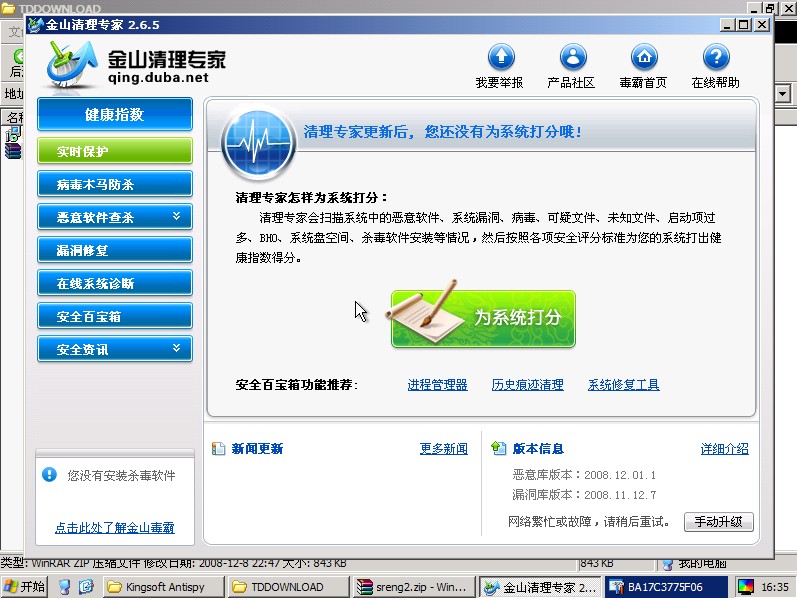 3、重新启动电脑,此程序开机后会自动运行,你用它(sreng)扫描一个报告上来。