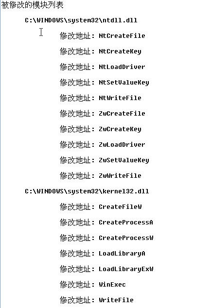 我先用江民进程查看器分析系统,显示NTDLL.DLL,USRMON.DLL等被修改了。如图1,图2