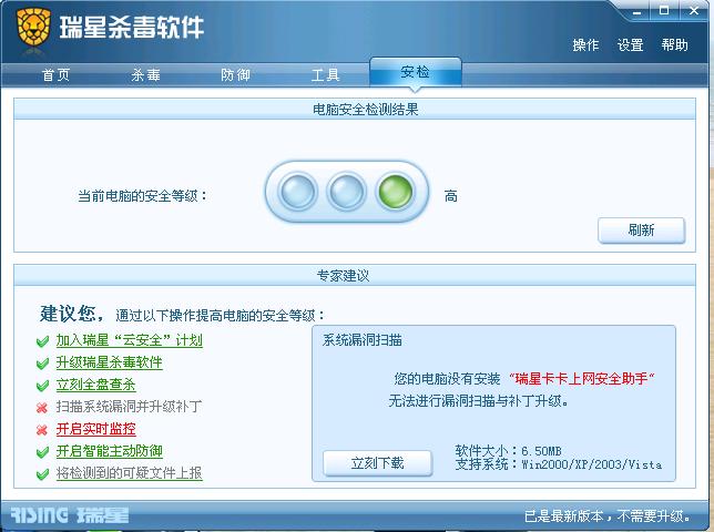 2 开始--程序--瑞星杀毒软件--添加删除组件--勾选“瑞星监控中心”--下一步一直到完成。