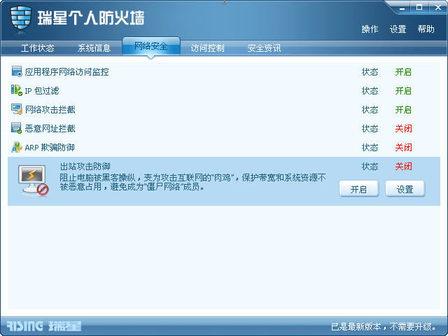 不知道怎么回事,我的瑞星是正版的组合版,是原来买的盒装,现在自己升级成为09版后,出现好多问题,一个是我的电脑上不了网,得把防火墙网络安全标签里面的后三项“恶意网址拦截”、“arp……”、“出站攻击防御”都关闭才能够上网,不然你任何网络都没法上,过完年以后,又是连UUSEE网络电视也没法用了,无法连接,只有关闭防火墙才恢复正常,在防火墙里面设置了“程序规则”等都为允许还是不行,还有原来08版时用的好好的财智软件,到09版没法用了,当然这个软件是破解过主程序的,我理解可能杀毒软件认为有恶意,但08怎么没有认为呢,好了,不说了,反正好多的不便。本人很生气,后果是换了NOD,现在一切恢复了平静。