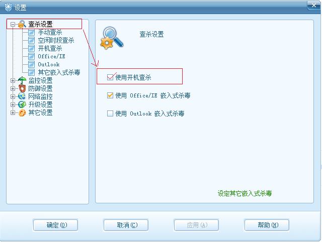 我在安装时把开机查杀的关了 现在想恢复 要怎么操作?