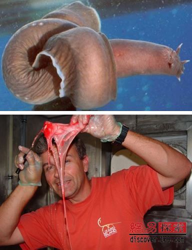 太平洋的八目鳗类鱼的自卫方式让人作呕。当它遇到敌人袭击的时候,其毛孔会分泌出令人窒息的粘液,包埋敌人致死。不幸的是,八目鳗类鱼有时会成为自己防卫机制的受害者。但通常情况下,它会把自己拧成几节,然后从粘液中逃脱。 (本文来源:网易探索 )
