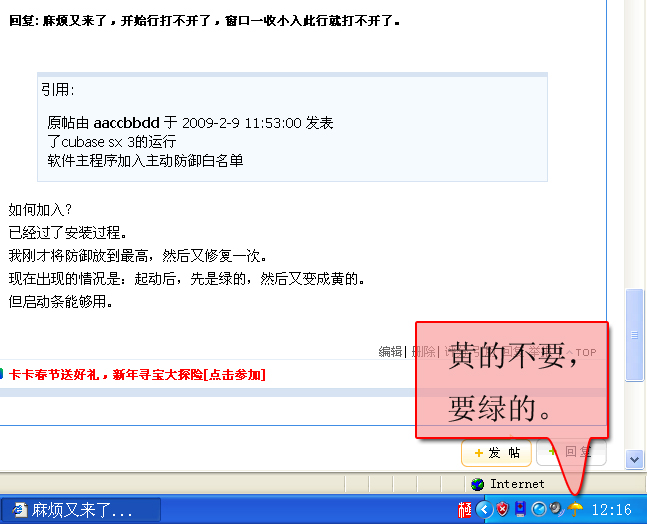 真是怪事,听baohe的话,只要扫描过的文件就可以安装,也可以关闭监控文件安装,现在装了一个cubase sx 3后,开始行一动不动了,真是怪事,桌面的还可以打开,快速启动栏则不动,只要窗口一收缩到这个行上,就打不开了,是什么原因?