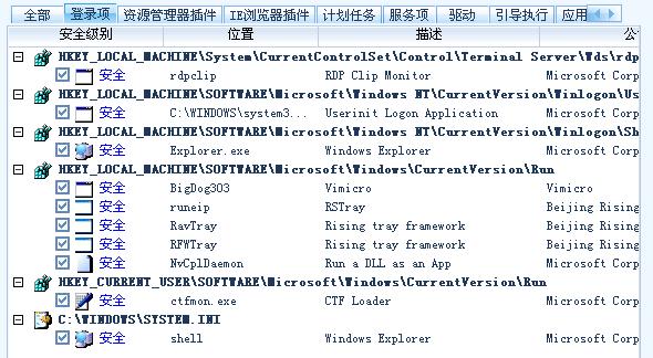 看启动项上面的注册表项 红线部分 这部分在优化大师的开机速度优化里面都会显示