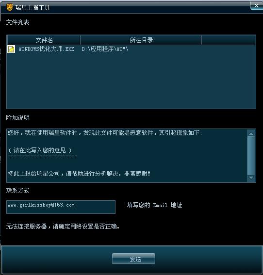 瑞星上报问题,怎么上报不了,:
