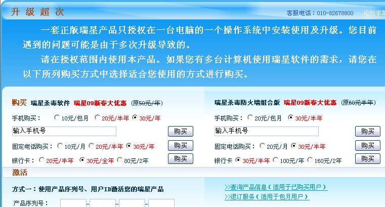 我是05年的瑞星软件,跨版升级到09年版,也是一个序列号有好几台都在用,最近不知道怎么老是升不了级。提示升级失败,可是他们又不经常用电脑,是不是我的瑞星有问题啊