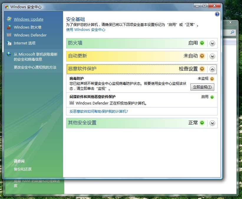 我是每天一开电脑第一件事就要更新瑞星...但是从过年那段时间起,Windows安全警报就时不时跳出来,那时候是过年没有版本可更新就算了啊,现在我每天都更新,怎么安全警报那个红xx还要跳出来,看着心里就不爽......有时是说版本过期,有时又是被关闭. 我已经按论坛里说的,重新修复过瑞星了,可是今天中午更新完之后,过了二十分钟那个红XX还是出现了:"瑞星杀毒软件 报告它可能被关闭 瑞星杀毒软件 未提供给安全中心一个程序来修复该问题."