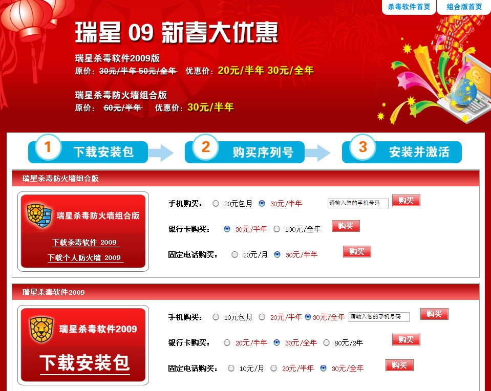 “瑞星杀毒防火墙组合版”包含杀毒软件 和防火墙