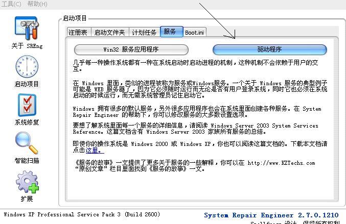 SREng-在"启动项目->服务->驱动程序中"选中"隐藏已认证的微软项目"然后删除下面名称的驱动程序(选中有问题的驱动后,点"删除服务",点“设置”按钮即可。注意弹出的窗口中要点 "否NO"才是确认删除服务)(不能删除的就禁用:启动类型改为disabled,点中修改启动类型,点设置):