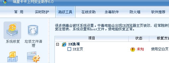 卡卡上网助手扫描不出有流氓软件,不过按照你说的“系统修复”还真的奏效了。谢谢。