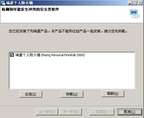删除注册表中HKEY_LOCAL_MACHINE\SOFTWARE\rising\RFW键之后,再安装。