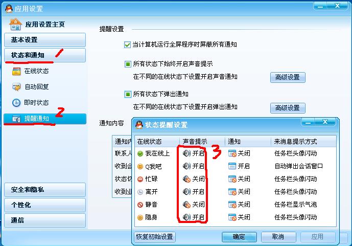 我的QQ没那种提示音了,我该试的办法都试了,重新按了个还是不行,而且QQ系统设置里的声音都是打开的,下载的QQ系统也是全的,有声音文件,可就是没有声音,电脑声音是好的。