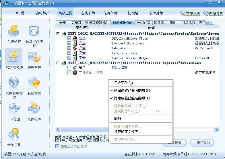 2.删除重启后使用SREng修复下面各项: 启动项目 -- 服务 -- Win32服务应用程序之如下项禁用: