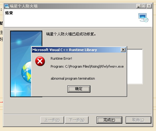 应该是程序损坏,建议楼主卸载防火墙,同时删除防火墙安装目录后,从瑞星网站下载09安装包,重新安装09版,应该是可以解决的。