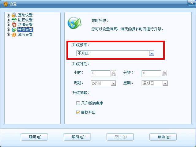 2、根据你的描述,你的瑞星软件“升级设置”肯定是设置为“即时升级”或“定时升级”,建议设置为“不升级”,完成后请每天打开瑞星软件(杀软+防火墙),单击界面上的“软件升级”来纯手工升级。