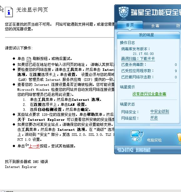 开了瑞星之后就不能了