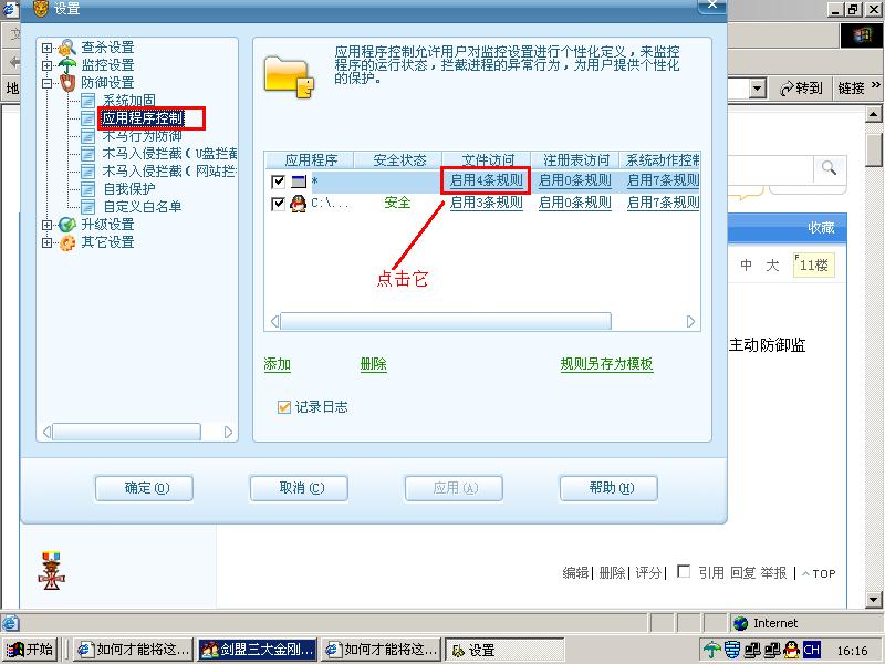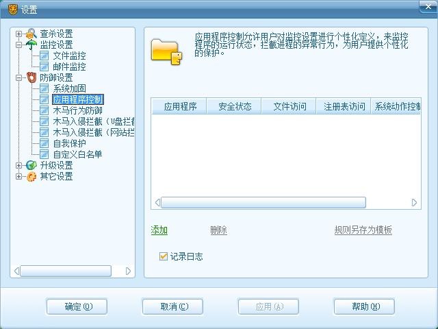 1请启动瑞星杀毒软件的主程序,选设置->详细设置->然后选应用程序设置.结果如下图(图1):