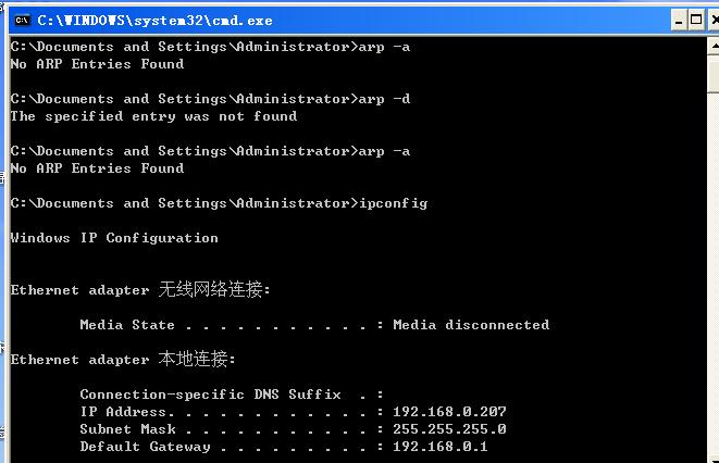 cmd后看看如图,有时候还出现 mac地址网关是00-00-00-00-00-00的