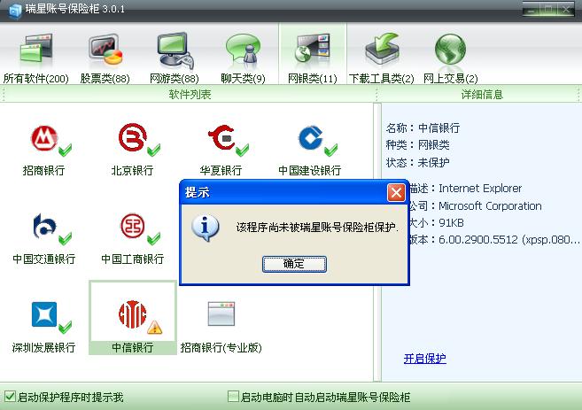 我的系统是xp sp2的,至于楼上说的怪怪的,我也不知道是怎么回事。比如淘宝网,我直接打开淘宝网根本没有提示我淘宝网被保护,但是我打开QQ或者阿里旺旺(淘宝版)就会提示,我把瑞星修复了,但是还是没用。我的保险箱是3.01的。