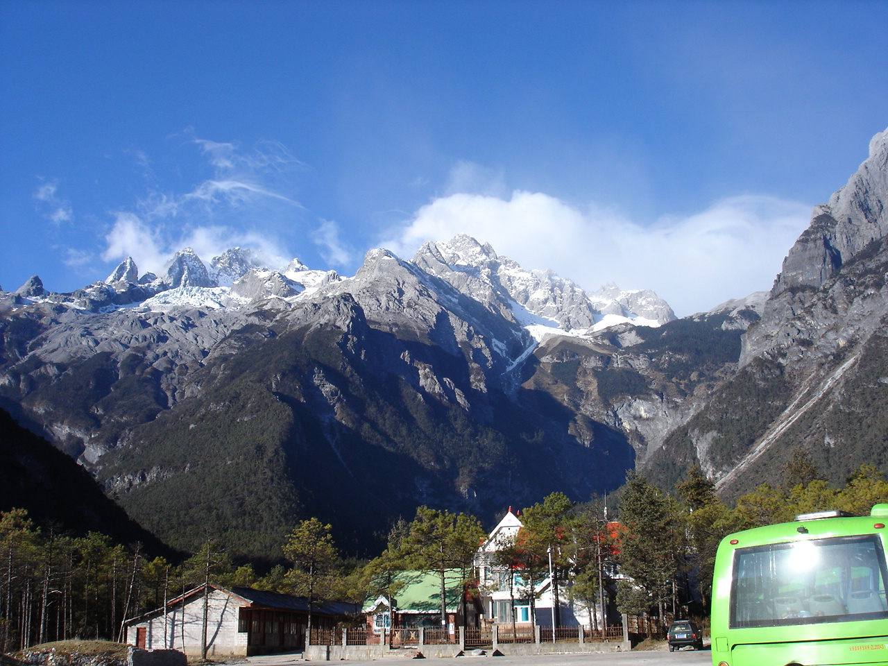 进玉龙雪山游览区必须乘座玉龙雪山游览区环保车进山(其实就是电瓶车),以减少尾气对游览风景区的污染!!!这辆草绿色的“游览车”就是环保电瓶汽车!!!