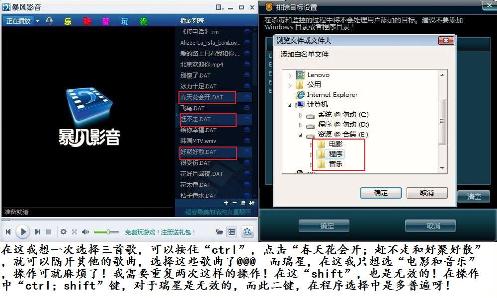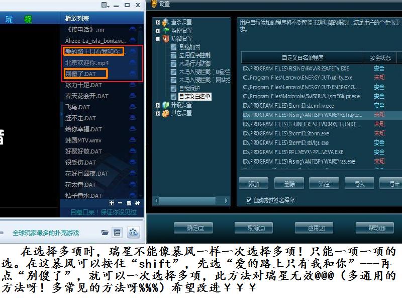 楼主的意思是希望瑞星能够再白名单列表中,鼠标能够同时选择多个项目。