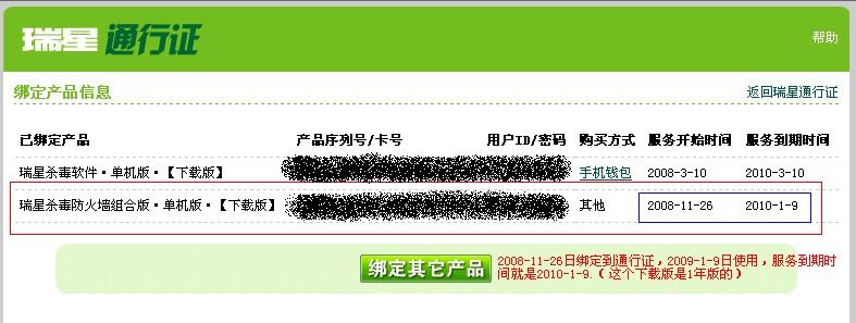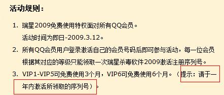 管理!我想问下,我是一个QQ会员VIP6级的,然后免费领取了免费6个月的瑞星全功能序列号的,然后我和我的通行证绑定了,绑定之后看了,我的购买方式是其他,我的服务开始时间是2008年12月18日的!为什么会这样啊?到期时间却没有显示出来!是不是没有激活就没有显示吗?再一个问题,我这个6个月的序列号没有激活过会过期吗?我想等到5月份再用可以吗?
