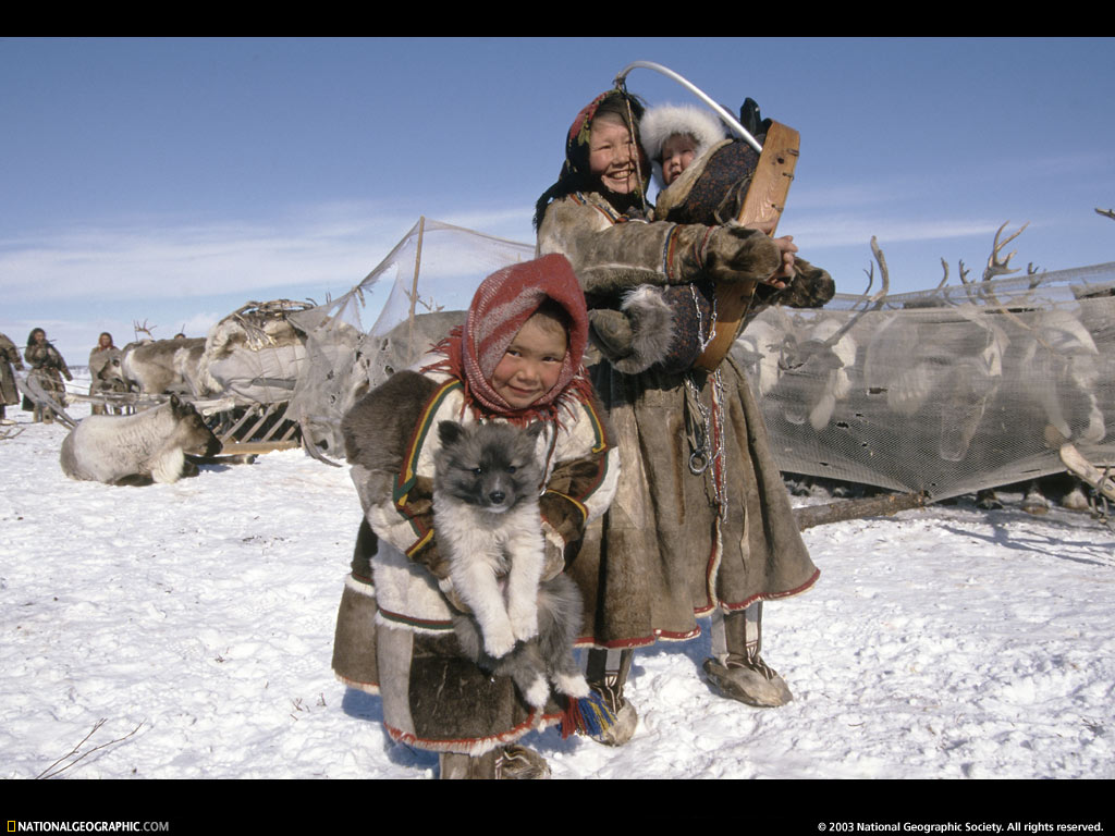 一个涅涅茨人旅队,或放牧队,正准备跟随他们的驯鹿前往夏季牧场。这次旅程前往其中一个位于北极圈内大约200英里宽(322公里)的没有树木的冻土地带。