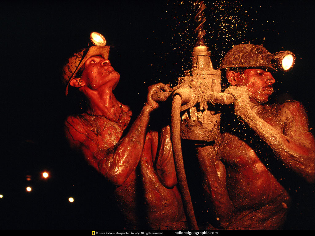 印度东部地下260英尺(80米)处的矿工们从地球里面往外挖煤。这些煤燃烧的时候会向大气中释放二氧化碳(CO2 )。当一些新兴国家加入他们工业化的邻国燃烧更多矿物燃料的时候,空气中的CO2 量在下个世纪预计增加一倍。很多承认地球气候规律具有可怕复杂性的专家认为过高的CO2 水平会给全球气温升高和致使重大气候变化带来真正威胁。