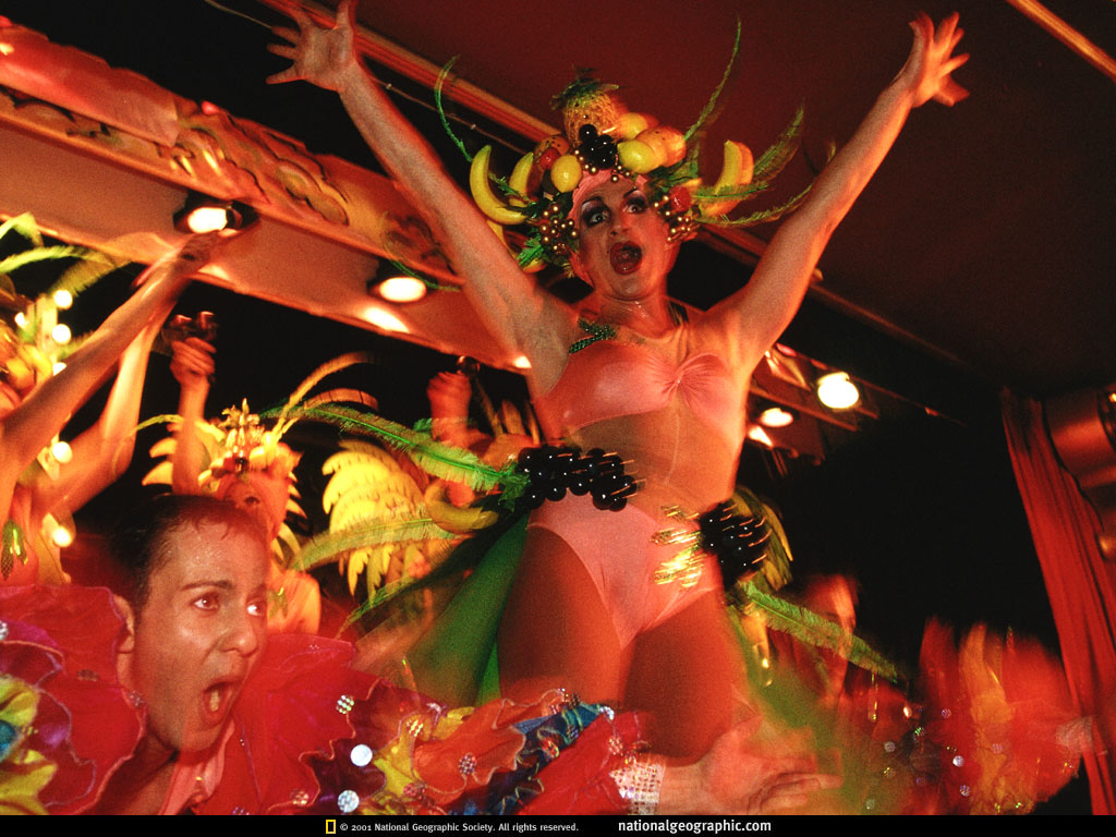 卡门 米兰达(Carmen Miranda)头顶着一个由缤纷的热带水果制成的头饰,异性扮演者西蒙 格林(Simon Green)大声喊着“欢迎来到哈瓦那!”在布莱克普尔这间奇特的俱乐部里,“滑稽少女们”表演的滑稽剧总是博得满堂彩。
