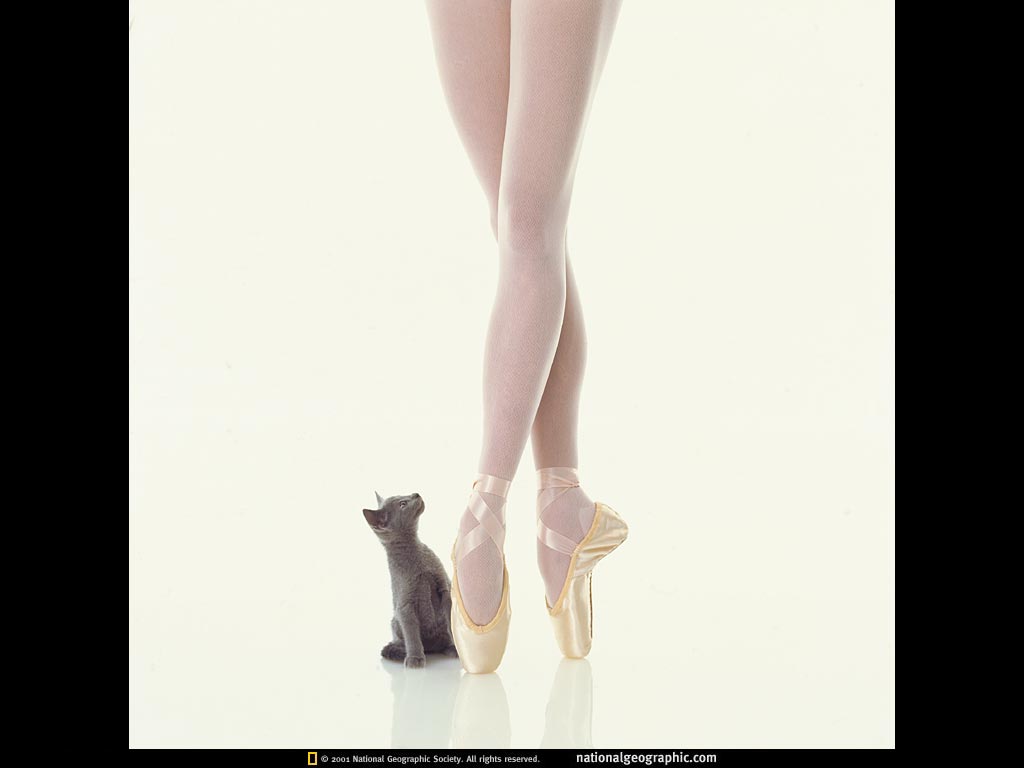 奶油色的缎子包裹着舞者或俄罗斯蓝色毛皮包裹着小猫,他们都体现了优雅。芭蕾舞女在她们的舞鞋脚尖端涂上松香,以避免演出时滑倒。小猫的爪垫提供了相似的摩擦力,并减弱每次的脚步声。