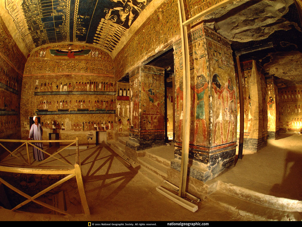 为了保持已逝国王的尊严,祭司把图坦卡蒙法老王的木乃伊安放在一个坚固的金棺。这个金棺又被安置在一个木棺里,而木棺又被卡进里面的第三个人形棺。近处的墓室是图坦王传说中的陪葬品宝库,包括几辆国王战车。如果一位短暂掌权的年轻国王有这些财宝陪葬,那么xxx老王的陵墓在盗墓者掠窃之前会有什么呢?