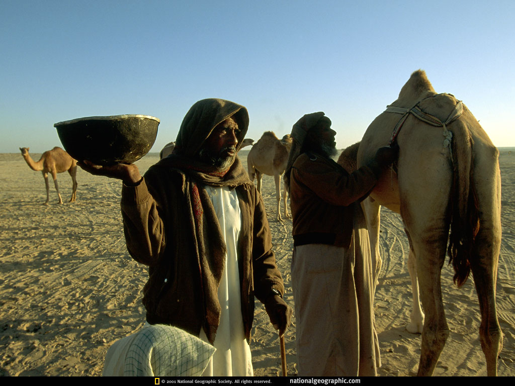 骆驼向哈拉斯族人提供奶。当游牧生活还在持续的时候,有一些贝多因人从部落的营地到城镇工作。