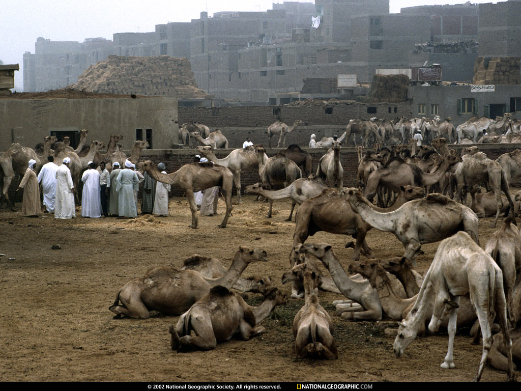 骆驼被誉为中世纪的陆地漫游者,它运载着旅客穿越撒哈拉沙漠或是到更远的地方。在朝圣者,商人和旅行者逗留的开罗,印巴巴市场上的骆驼的腿都被束缚起来,以防止它们走失。
