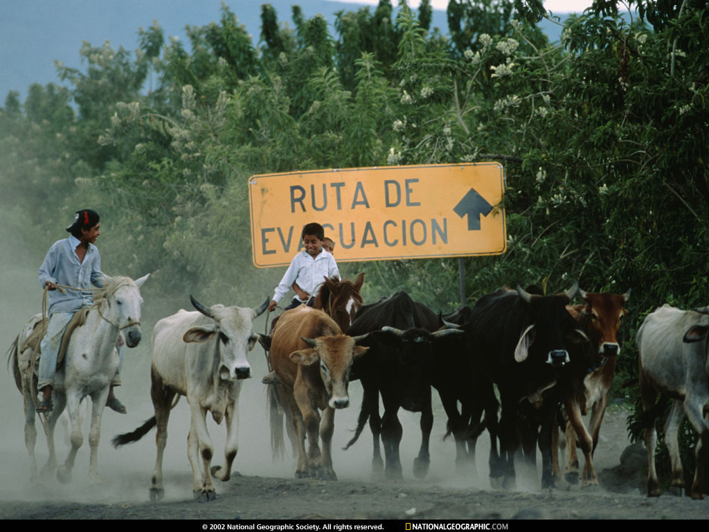 村民们赶着牛群沿着波波卡特佩特火山(Popocatépetl)旁的疏散通道行进,波波卡特佩特火山是世界上最高的活火山之一。