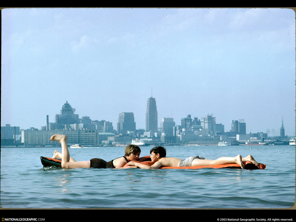 安大略首府多伦多正在飞速发展的,安大略湖畔的景色也日新月异。大约200万加拿大居民拥挤在这个城市中,还有一些不得不住在郊区。一些年轻人正在安大略湖沿岸的中心岛公园玩耍,因为在这里可以免受炎热之苦。
